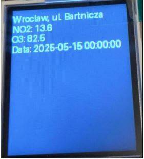 Opracowany system bazuje na mikrokomputerze Raspberry Pi 5 wyposażonym w wyświetlacz LCD, klawiaturę matrycową oraz diodę RGB, umożliwiającą podstawową interakcję z użytkownikiem. Dane środowiskowe są pobierane w czasie rzeczywistym z REST API Głównego Inspektoratu Ochrony Środowiska i przetwarzane lokalnie przy użyciu języka Python oraz bazy SQLite. Elastyczna architektura pozwala na dalszą rozbudowę, integrację z własnymi czujnikami lub usługami chmurowymi i idealnie wpisuje się w nowoczesne podejście do projektowania systemów IoT.